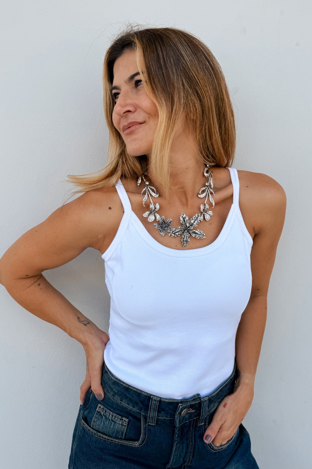 Combine com calça jeans azul marinho, shorts branco ou saia leve para um visual fresh e moderno. Finalize com acessórios neutros para um look equilibrado ou com acessórios coloridos para um toque fashion.
