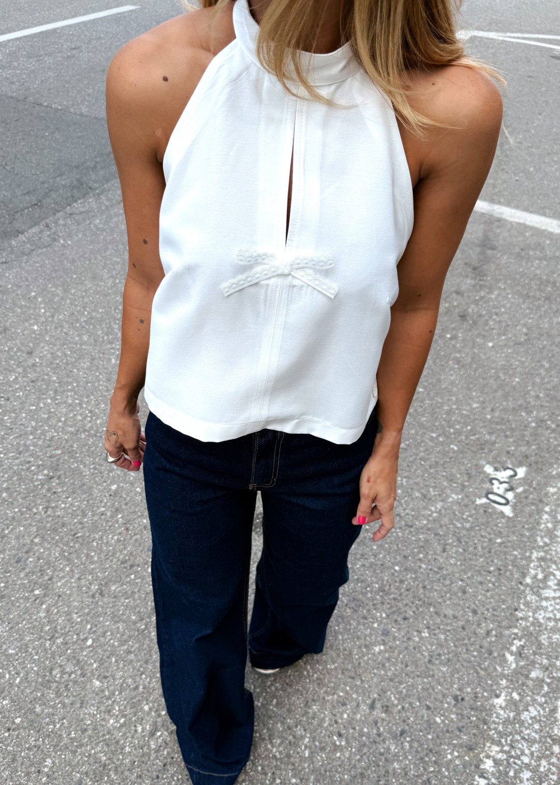 A modelagem sem mangas garante frescor e versatilidade, permitindo combinações com calças de linho, saias ou alfaiataria, do trabalho ao casual chic.
