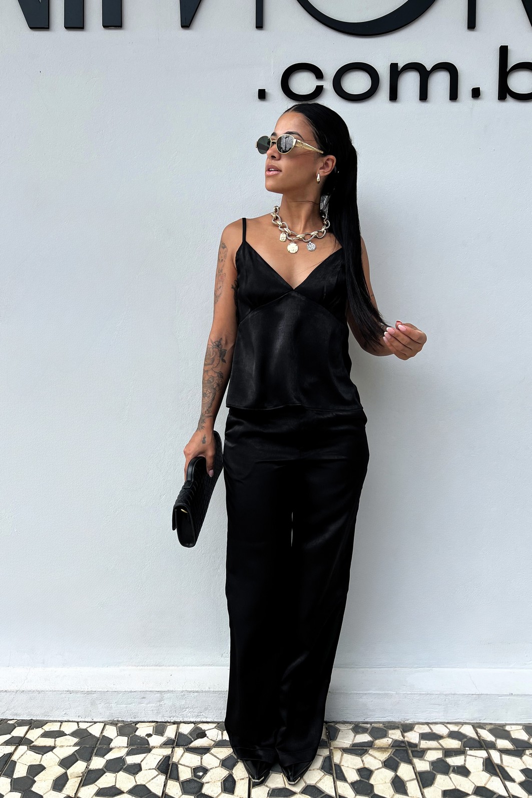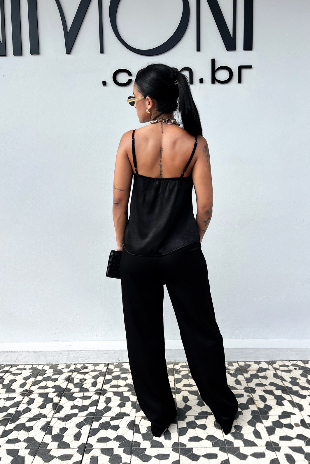 Combine com camisa ou blazer para um visual sofisticado, ou aposte em uma blusa de alça para um look moderno e equilibrado.