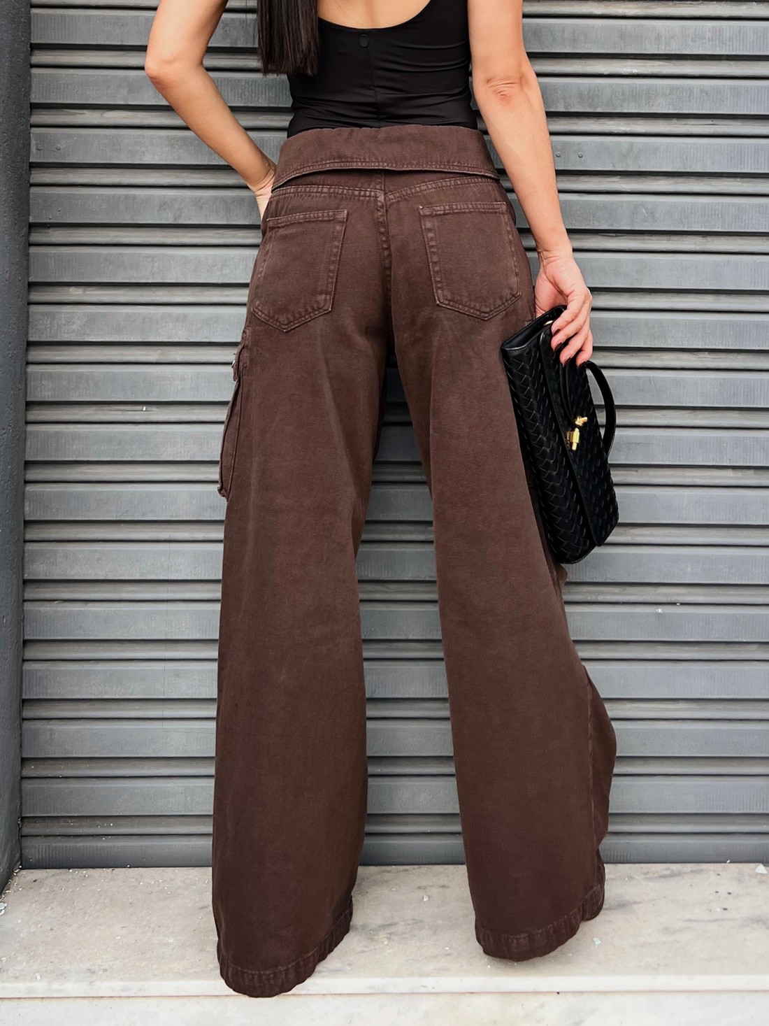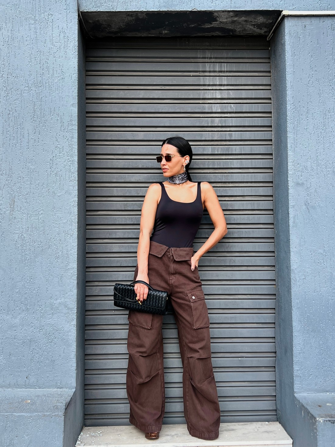 A Calça cargo Jasmin marrom é uma peça feminina versátil que combina estilo utilitário com um toque fashion & street. Confeccionada em tecido de alfaiataria estruturada, ela apresenta modelagem cargo com cintura alta, proporcionando um caimento confortável e que valoriza a silhueta. O design traz bolsos funcionais laterais e frontais, ideais para quem busca praticidade sem abrir mão do visual.