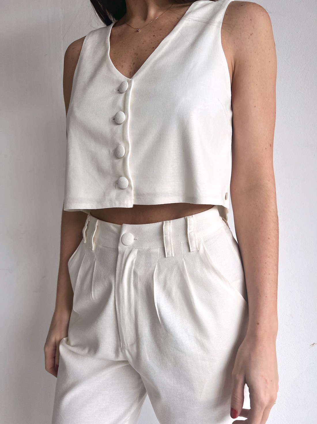 Colete Curto Feminino Branco Sofia