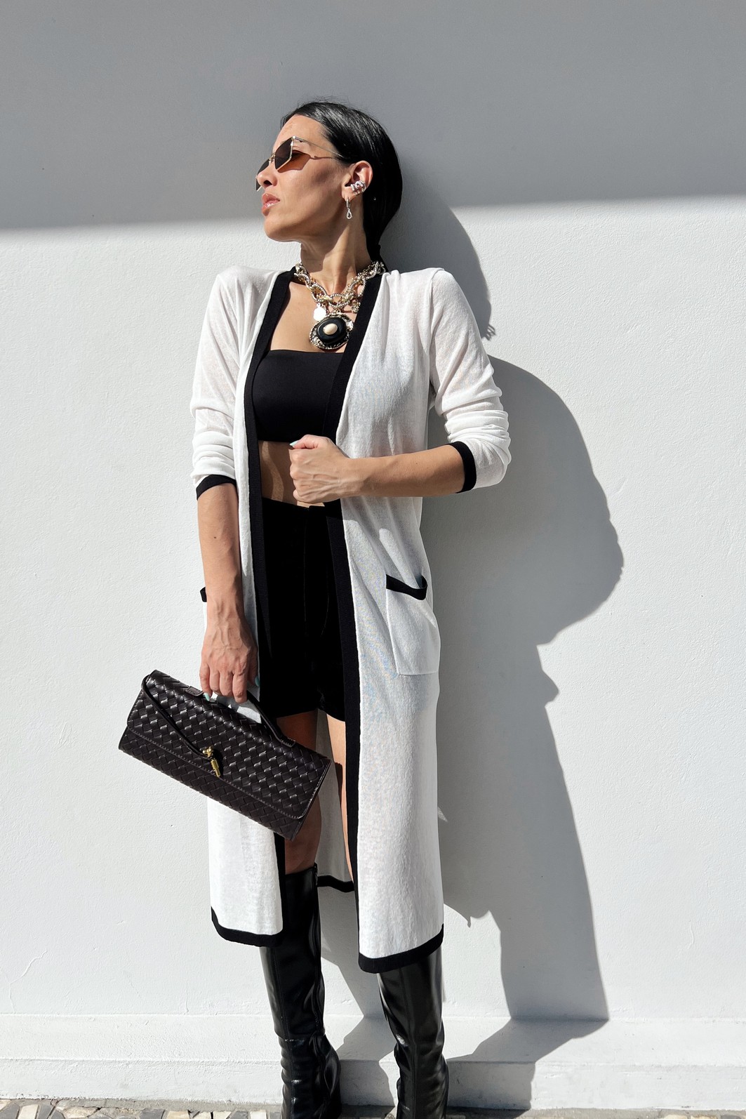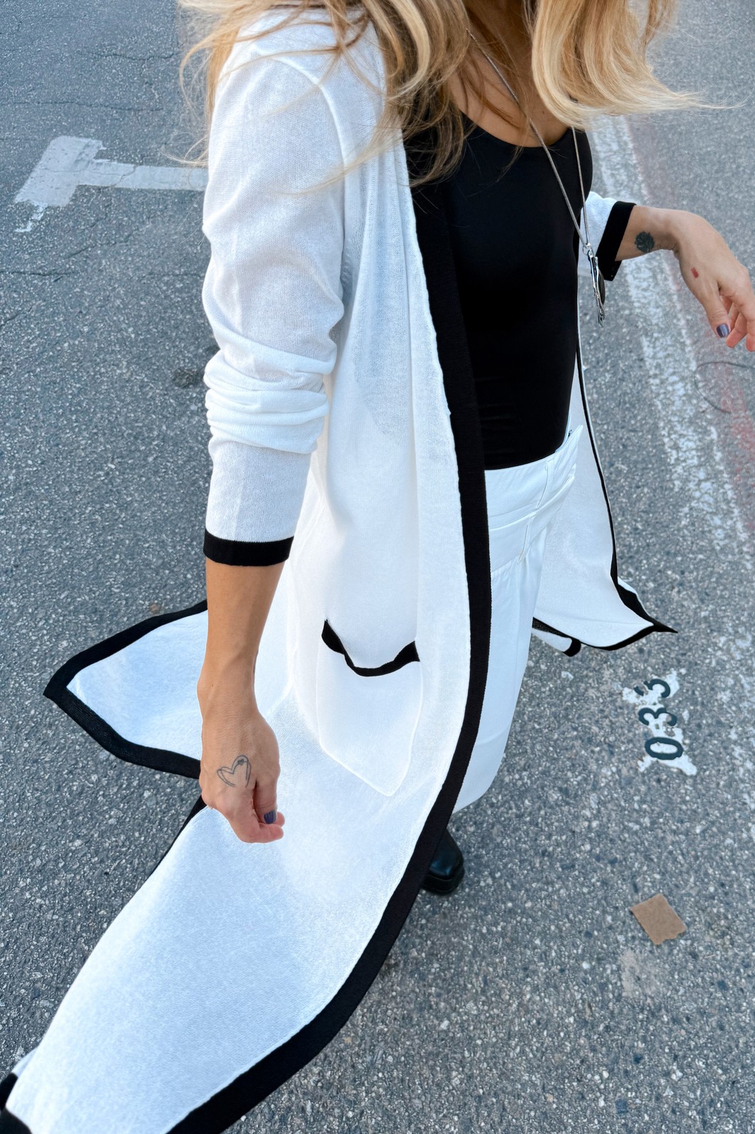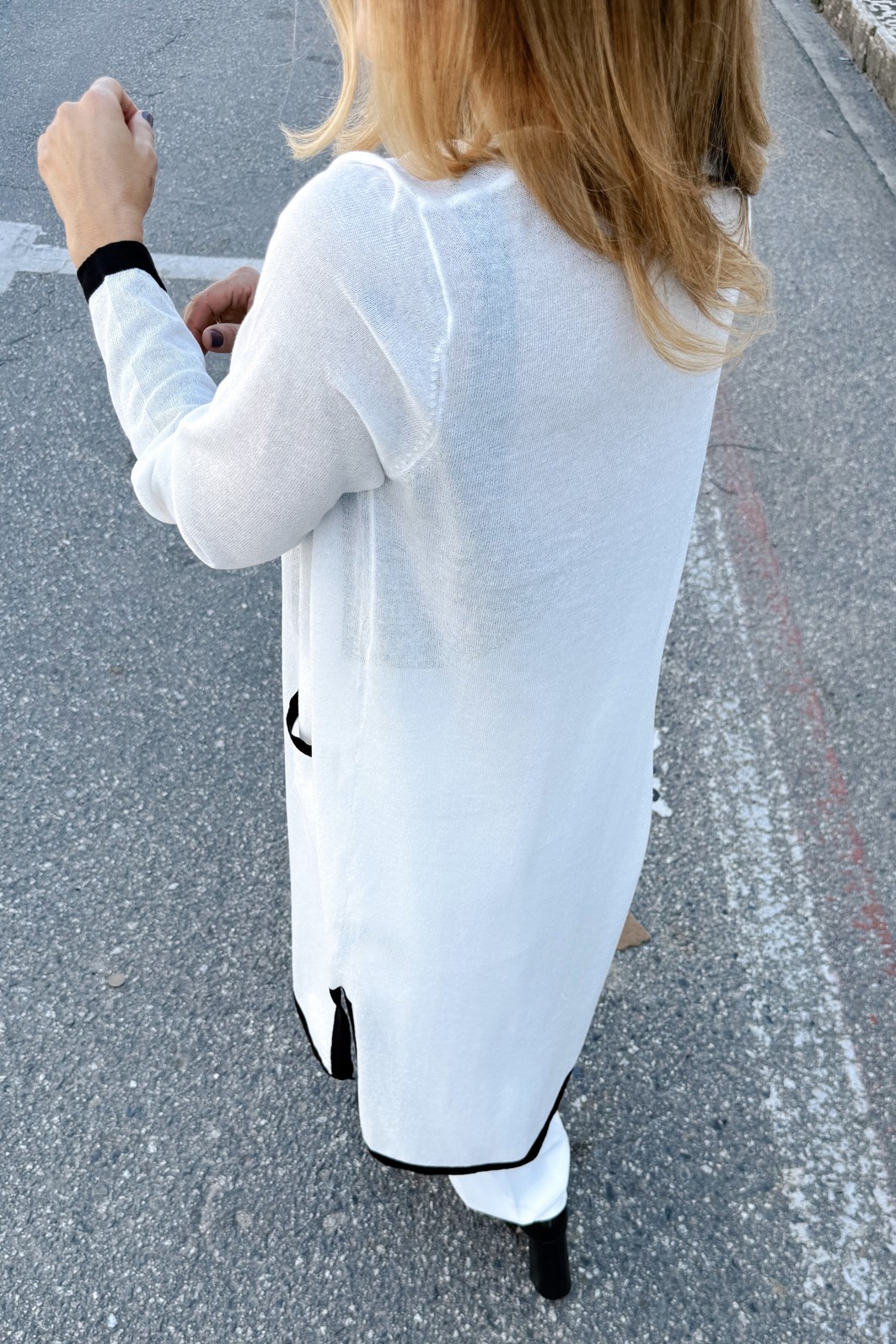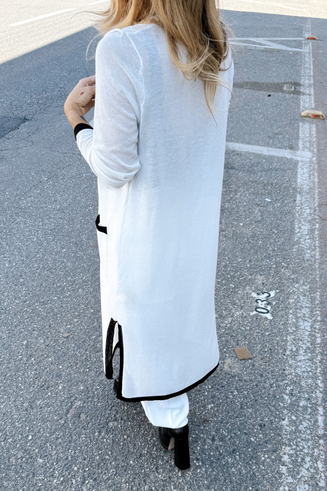 Leve elegância a todos os seus looks com o Cardigan Branco Selene – MiniMoni Alongado, uma peça curinga que combina conforto, estilo e versatilidade. Com modelagem alongada e caimento fluido, ele adiciona um toque sofisticado às suas produções, perfeito tanto para momentos casuais quanto para composições mais elaboradas.