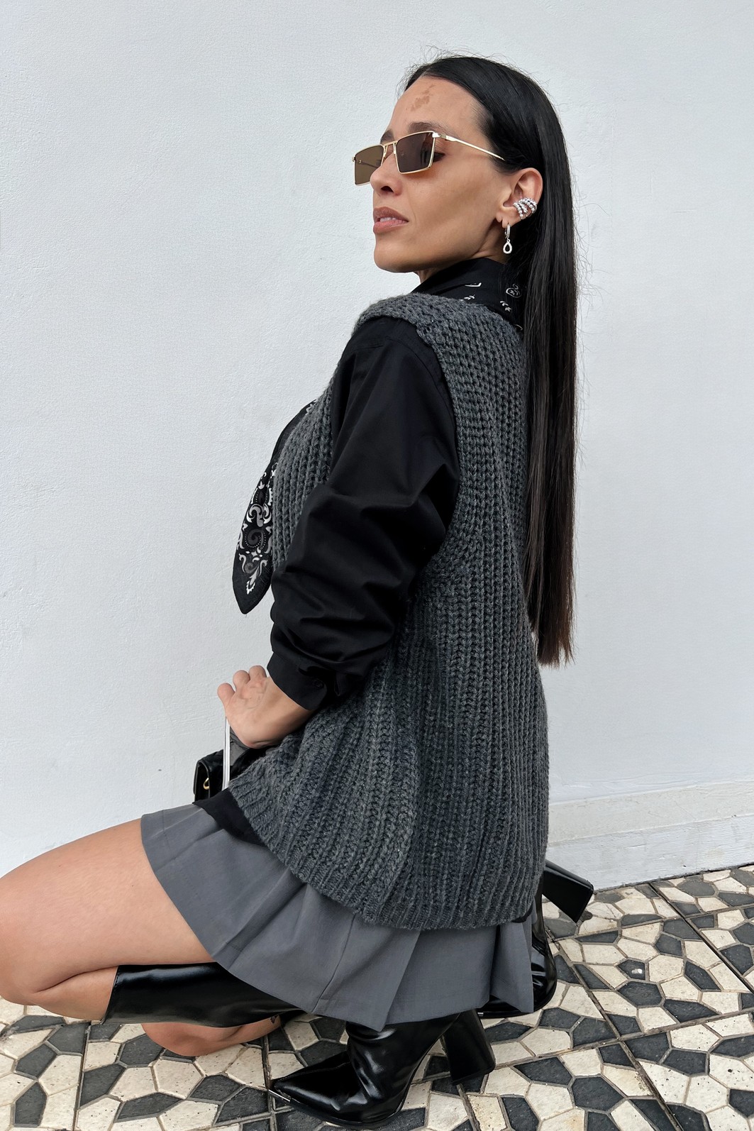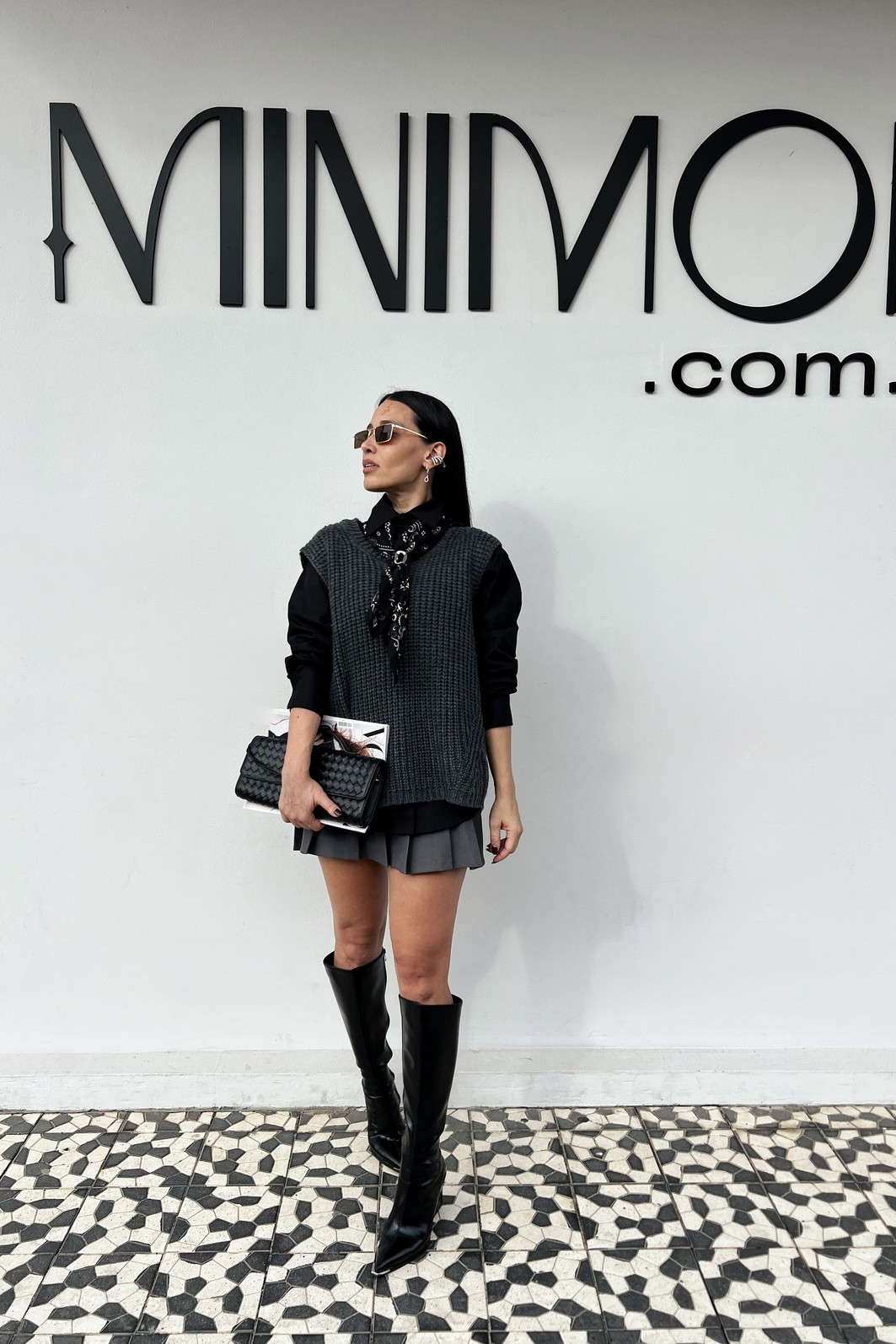 O Colete de Lã Preto Gemma é aquele peça-coringa que transforma qualquer look simples em uma composição cheia de estilo. Com sua cor neutra e corte sofisticado, ele se adapta facilmente a diferentes estilos e ocasiões — do casual ao elegante.