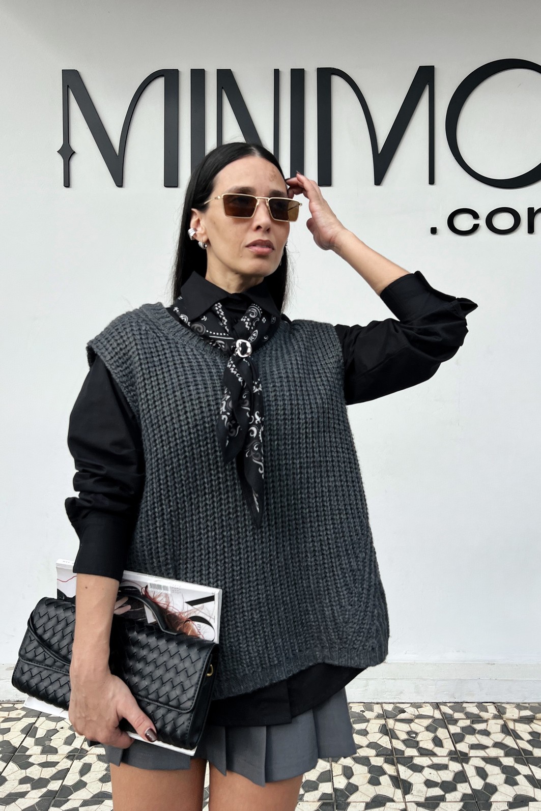 Eleve seus looks com o Colete de Lã Preto Gemma da MiniMoni — um item sofisticado e versátil que une conforto e estilo em uma peça indispensável para o guarda-roupa. Confeccionado em lã de alta qualidade, este colete traz um toque elegante e aconchegante para produções do dia a dia ou ocasiões especiais.