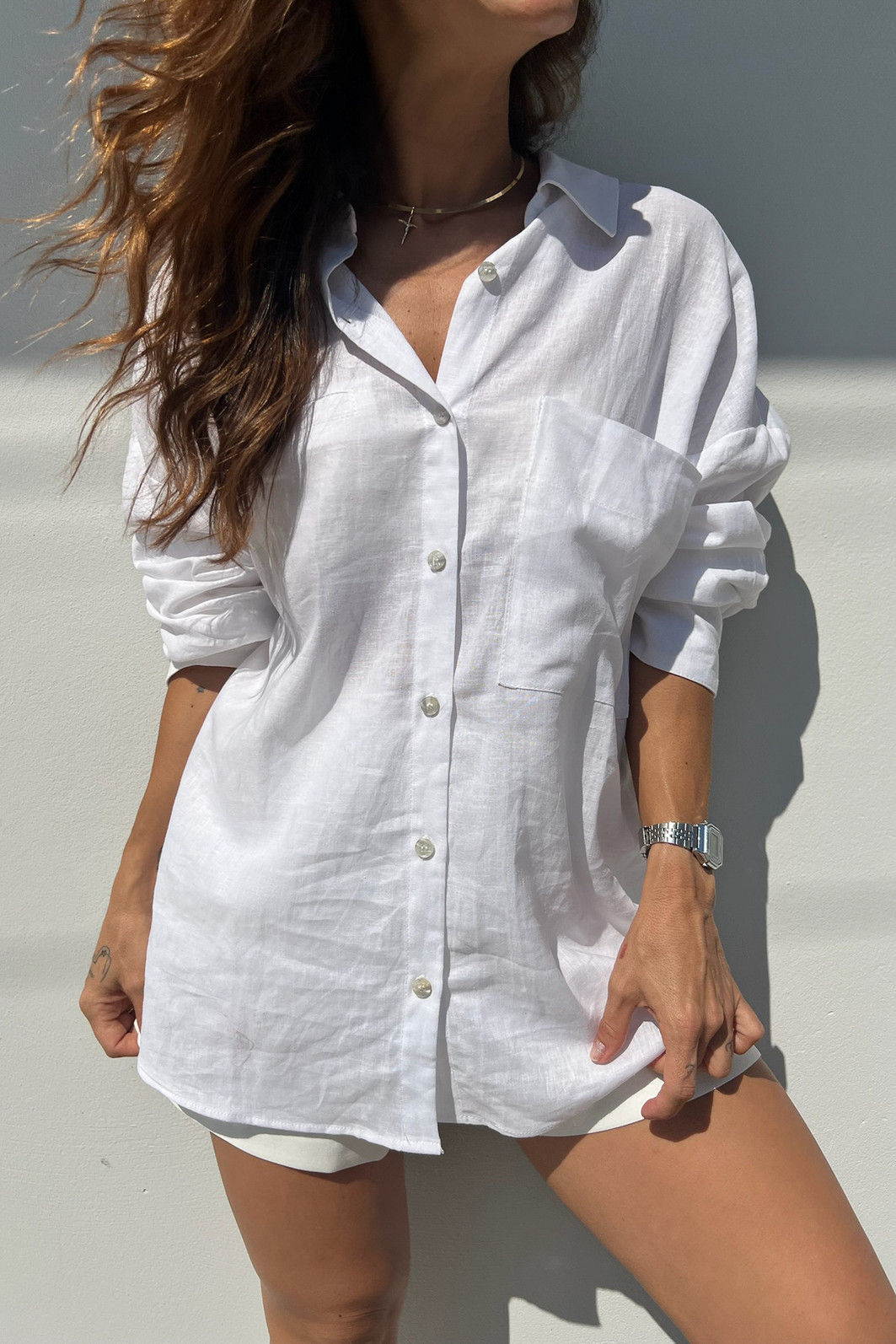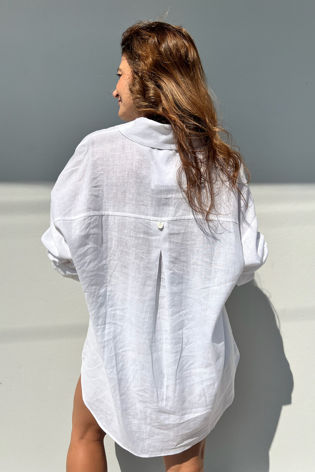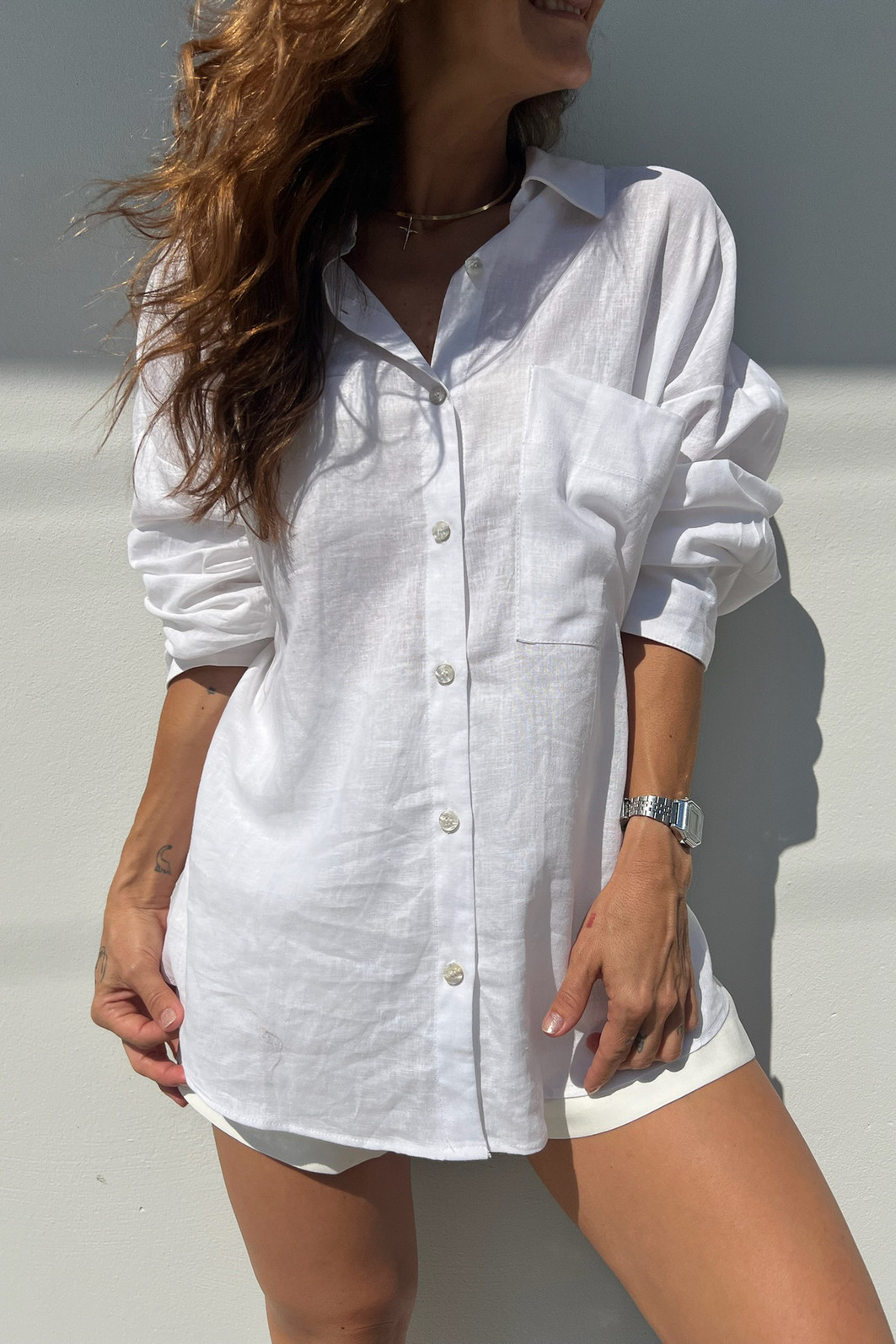 Com um bolso frontal prático e fechamento por botões, a Maxi Camisa Branca Sarita - Mini Moni une funcionalidade e estilo de forma única. A tonalidade branca é extremamente versátil, permitindo criar looks variados, desde os mais formais até os casuais. Ideal para ser usada como peça principal ou sobreposição, essa camisa é perfeita para diferentes ocasiões, do trabalho a passeios ao ar livre.