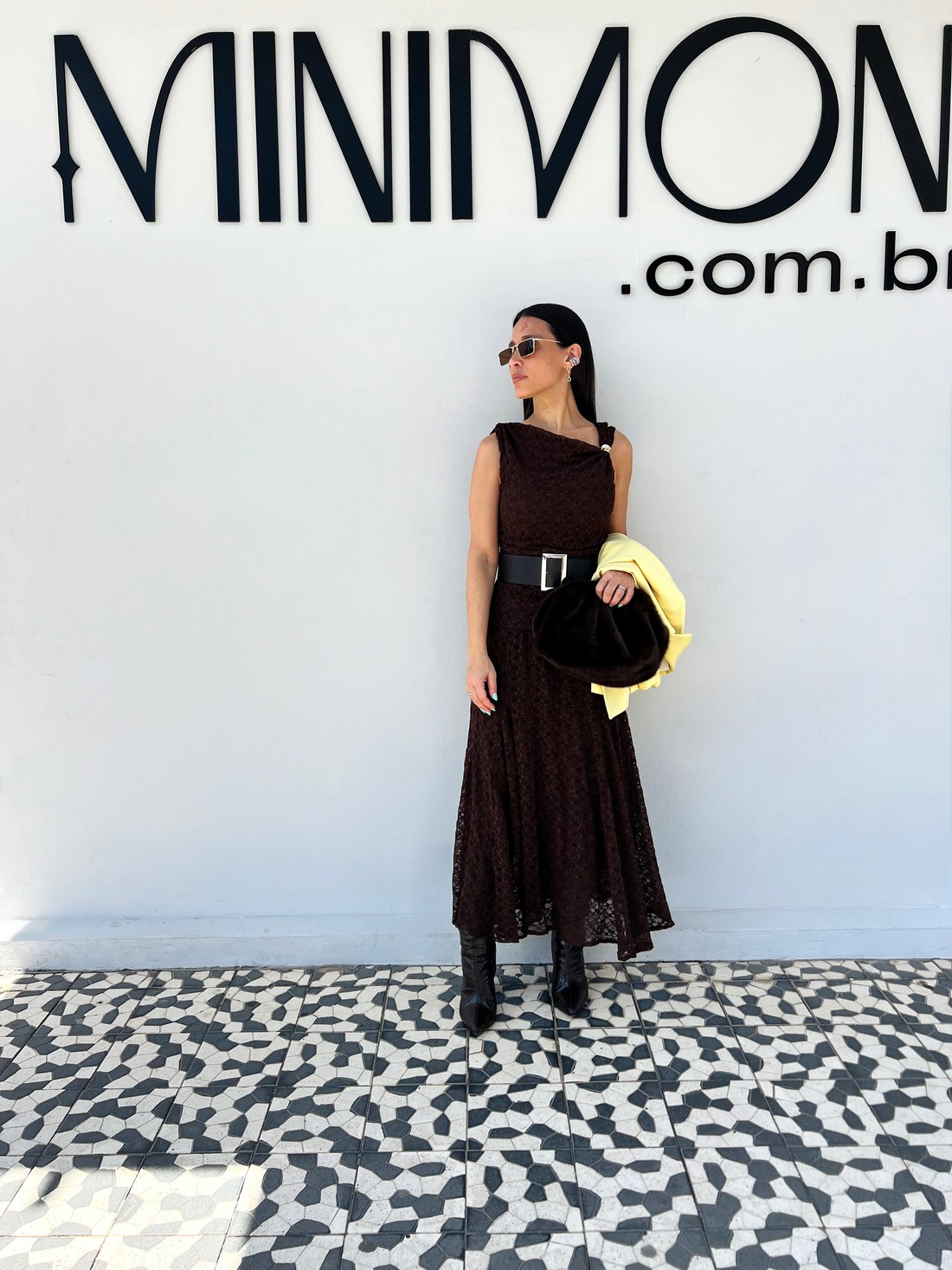 Combine a Saia Longa de Renda Yasmine MiniMoni com croppeds, blusas ajustadas ou camisas para um look equilibrado. Finalize com sandálias, botas ou tênis para criar diferentes propostas de estilo.