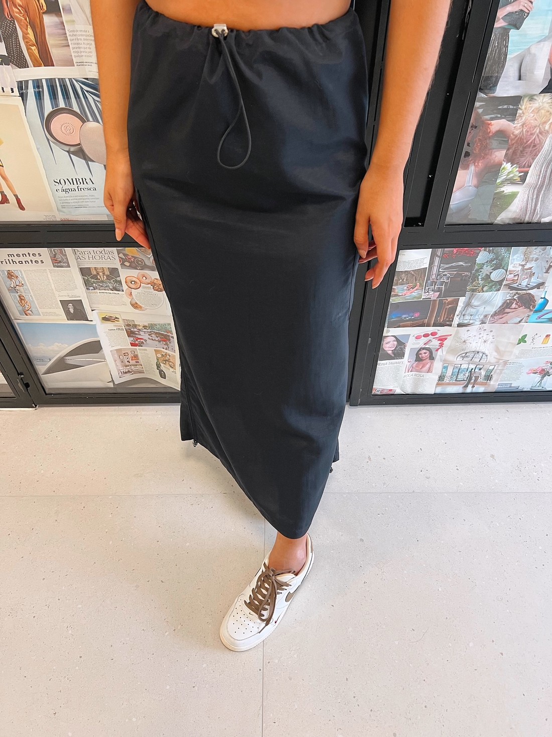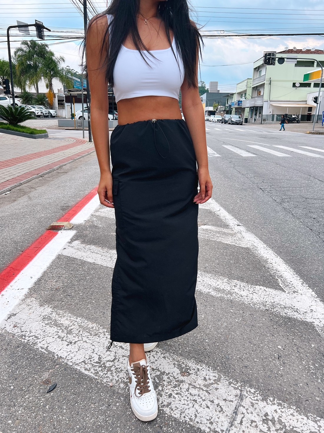 Saia Midi Paraquedas, conhecida por sua modelagem ampla é perfeita para ir do trabalho ao happy hour num piscar de olhos. E o melhor, te acompanha a vida toda, afinal é uma das mais atemporais que já passou por aqui!