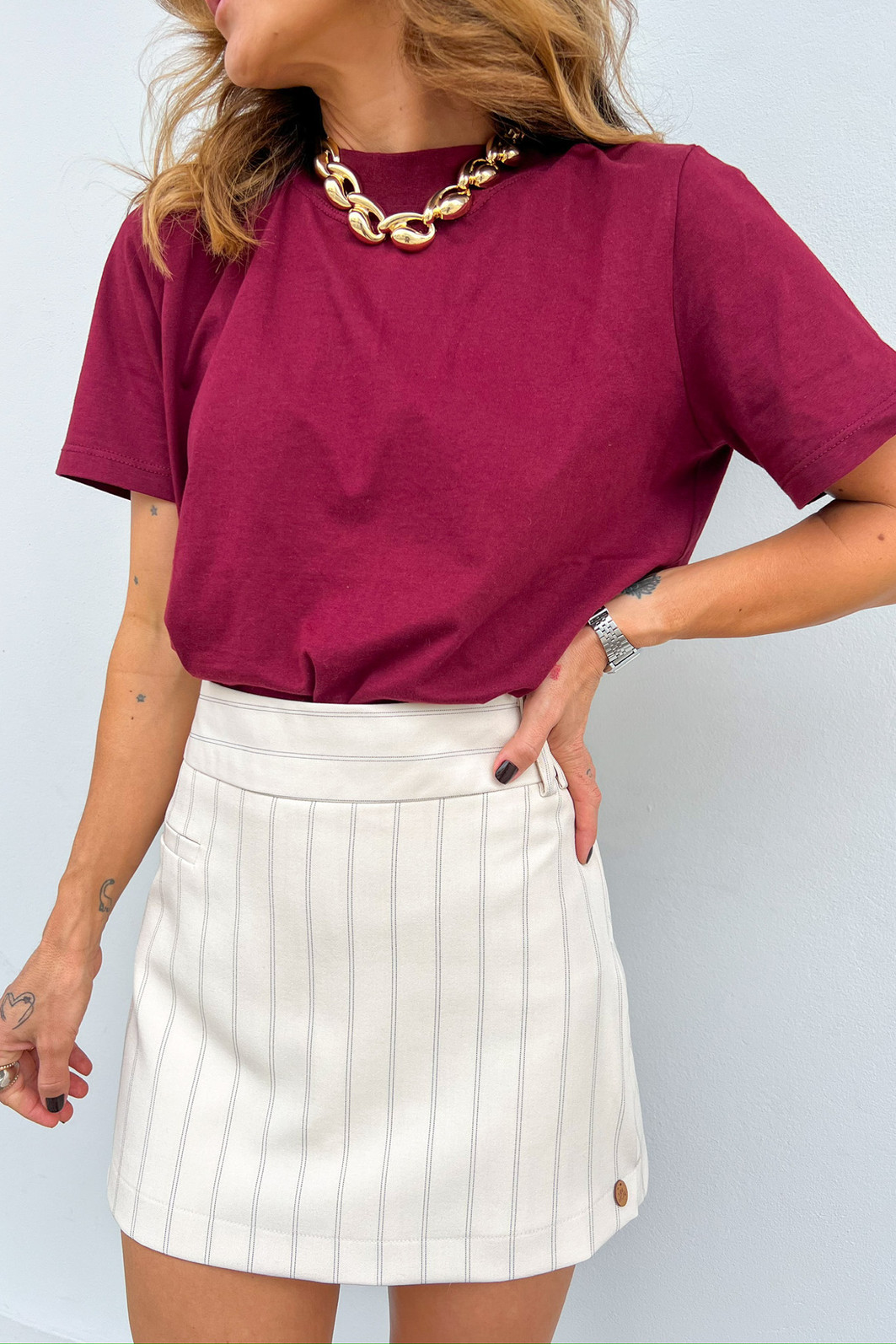 Seja para o dia a dia ou para compor produções mais arrumadas com jeans, alfaiataria ou até peças estampadas, a T-shirt Algodão Doce Vinho - Mini Moni é super versátil e combina com tudo. Sua composição em algodão puro garante um toque macio e respirável na pele, ideal para dias mais quentes ou para sobrepor em looks mais elaborados no inverno. É a típica t-shirt que te acompanha em todas as estações e ocasiões.