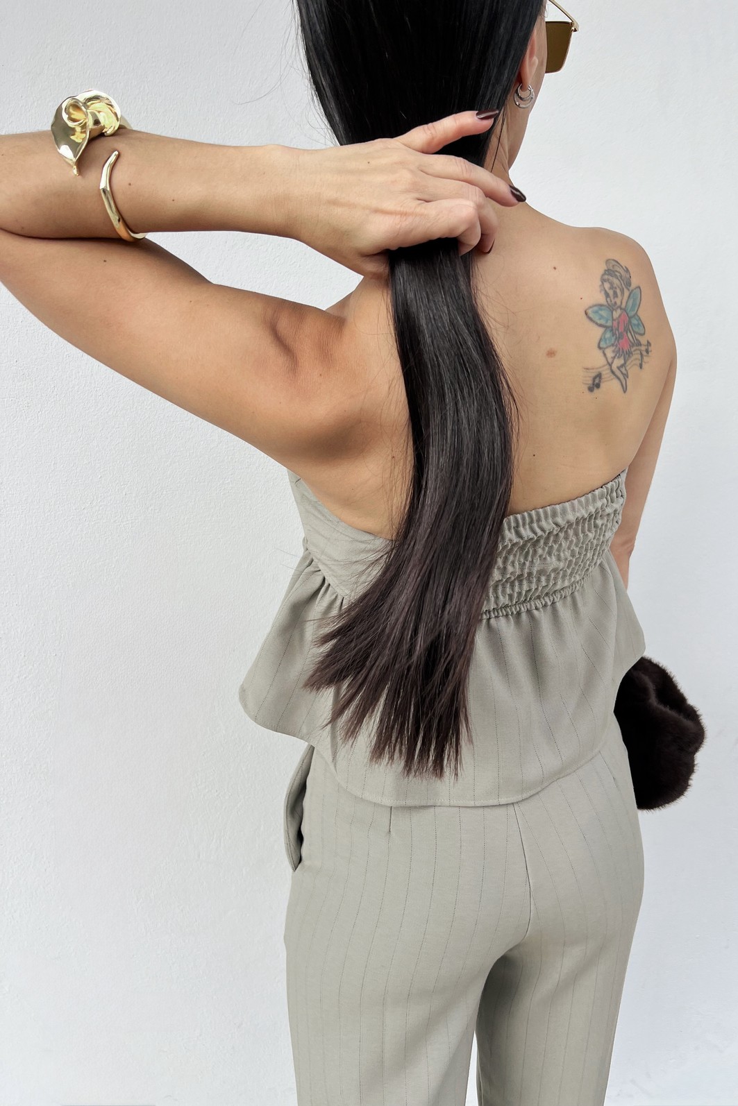 Tomara Que Caia Lavínia – MiniMoni, top de alfaiataria que resolve o look inteiro: sofisticado, minimalista e com caimento.
